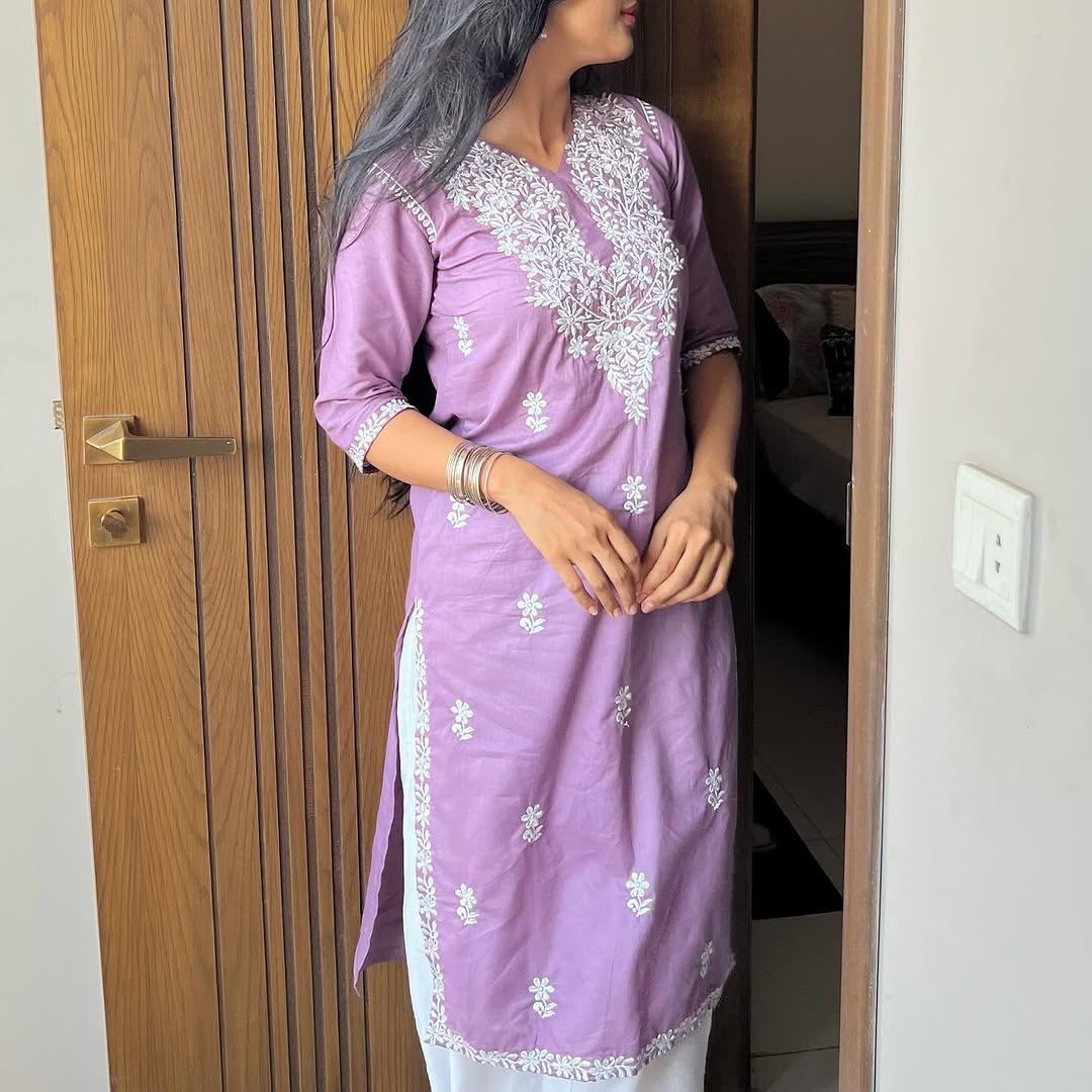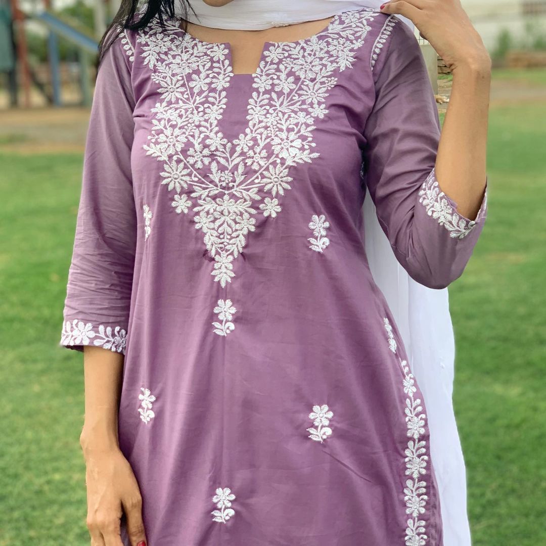 The Indian ๐‹๐š๐ฐ๐ง ๐‹๐ฎ๐œ๐ค๐ง๐จ๐ฐ๐ข ๐ค๐ฎ๐ซ๐ญ๐ข is crafted with ๐ฐ๐ก๐ข๐ญ๐ž ๐‚๐ก๐ข๐ค๐š๐ง๐ค๐š๐ซ๐ข ๐ž๐ฆ๐›๐ซ๐จ๐ข๐๐ž๐ซ๐ฒ throughout the shirt, complemented by beautiful borders on Side Seams, Daman and sleeves.