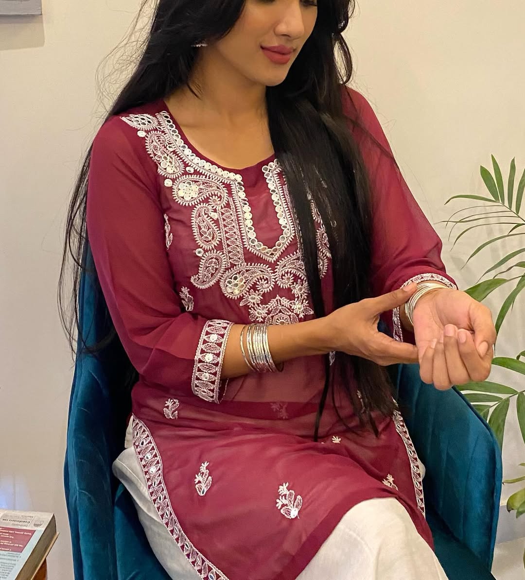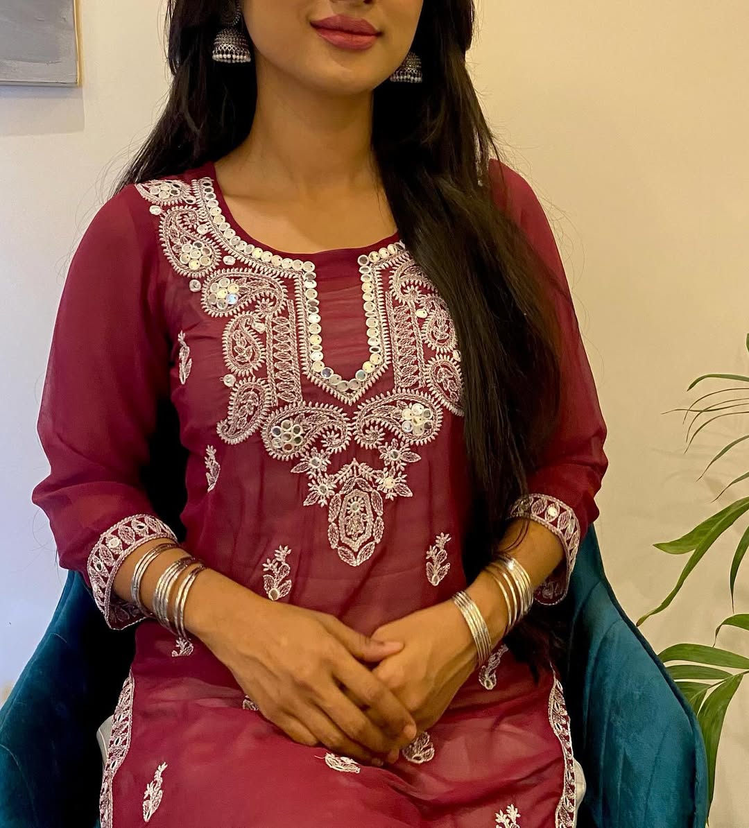 The Indian ๐‚๐ก๐ข๐Ÿ๐Ÿ๐จ๐ง ๐‹๐ฎ๐œ๐ค๐ง๐จ๐ฐ๐ข ๐ค๐ฎ๐ซ๐ญ๐ข is crafted with ๐ฐ๐ก๐ข๐ญ๐ž ๐‚๐ก๐ข๐ค๐š๐ง๐ค๐š๐ซ๐ข ๐ž๐ฆ๐›๐ซ๐จ๐ข๐๐ž๐ซ๐ฒ ๐š๐ง๐ ๐Œ๐ข๐ซ๐ซ๐จ๐ซ ๐’๐ข๐ญ๐š๐ซ๐š ๐ž๐ฆ๐›๐ž๐ฅ๐ฅ๐ข๐ฌ๐ก๐ฆ๐ž๐ง๐ญ throughout the shirt, complemented by beautiful borders on Side Seams and sleeves.
